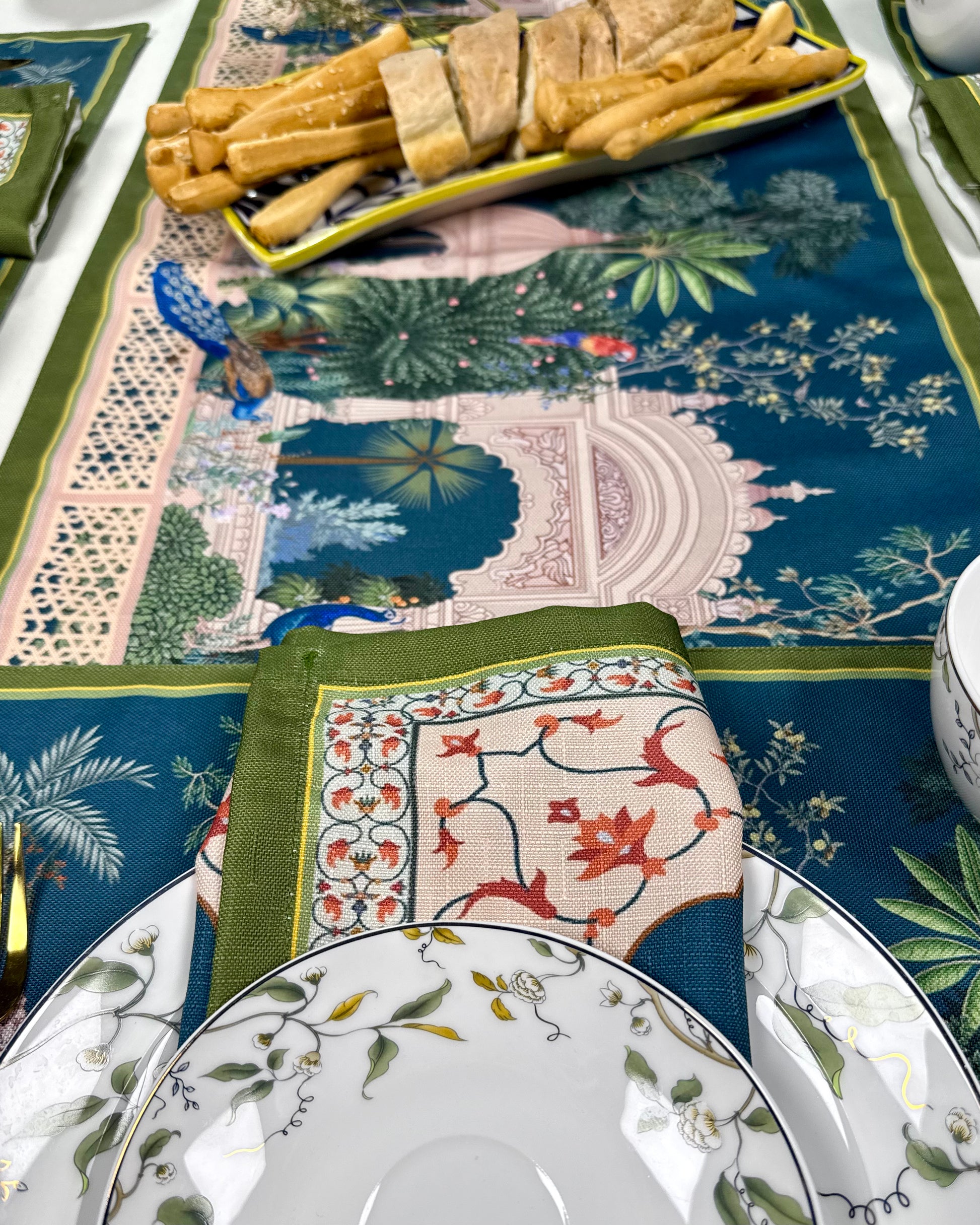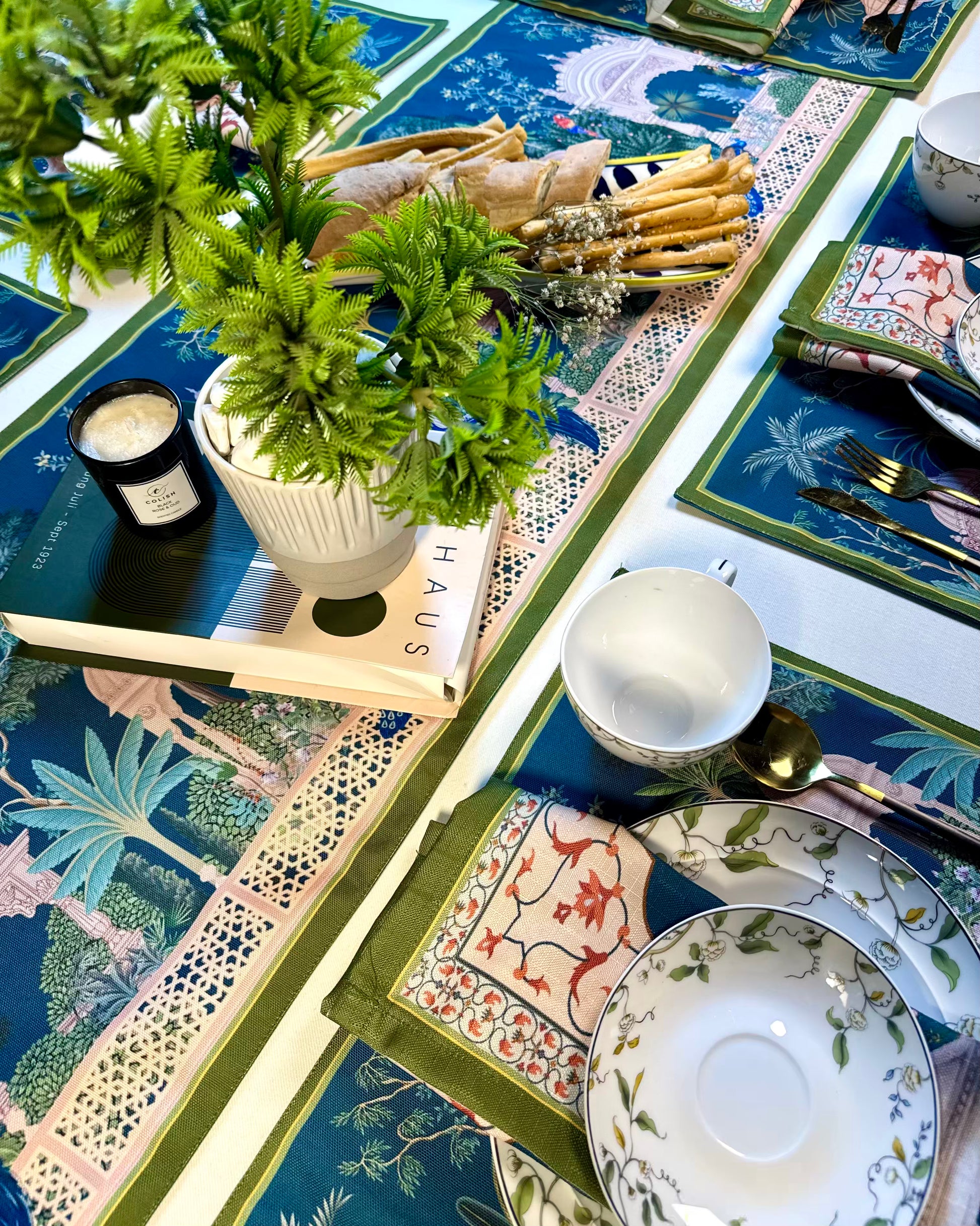 - 5 piece set contains: One (1) Runner of 72 x 15 inches and four (4) placemats of 12 x 18 inches each