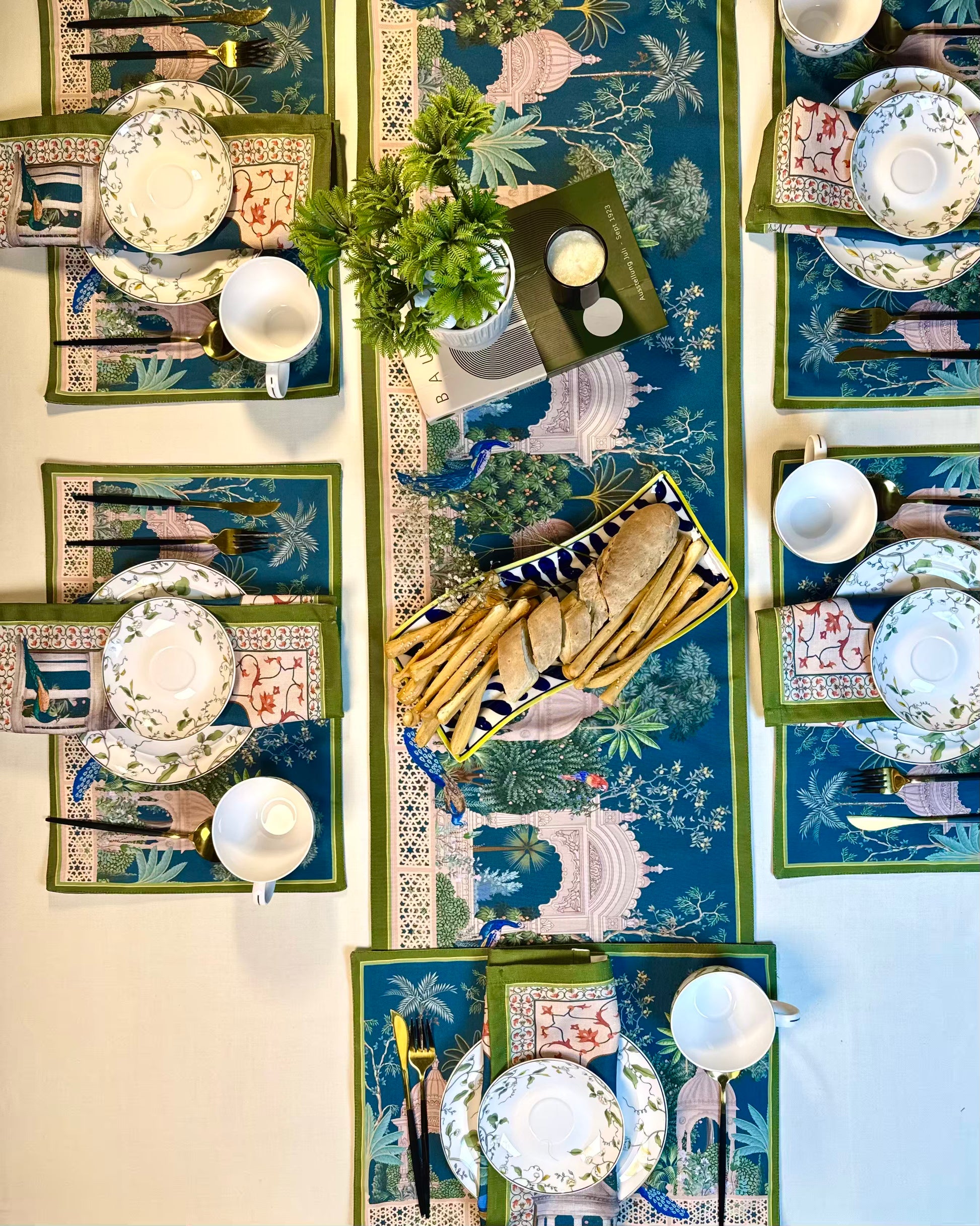 - 7 piece set contains: One (1) Runner of 72 x 15 inches and six (6) placemats of 12 x 18 inches each