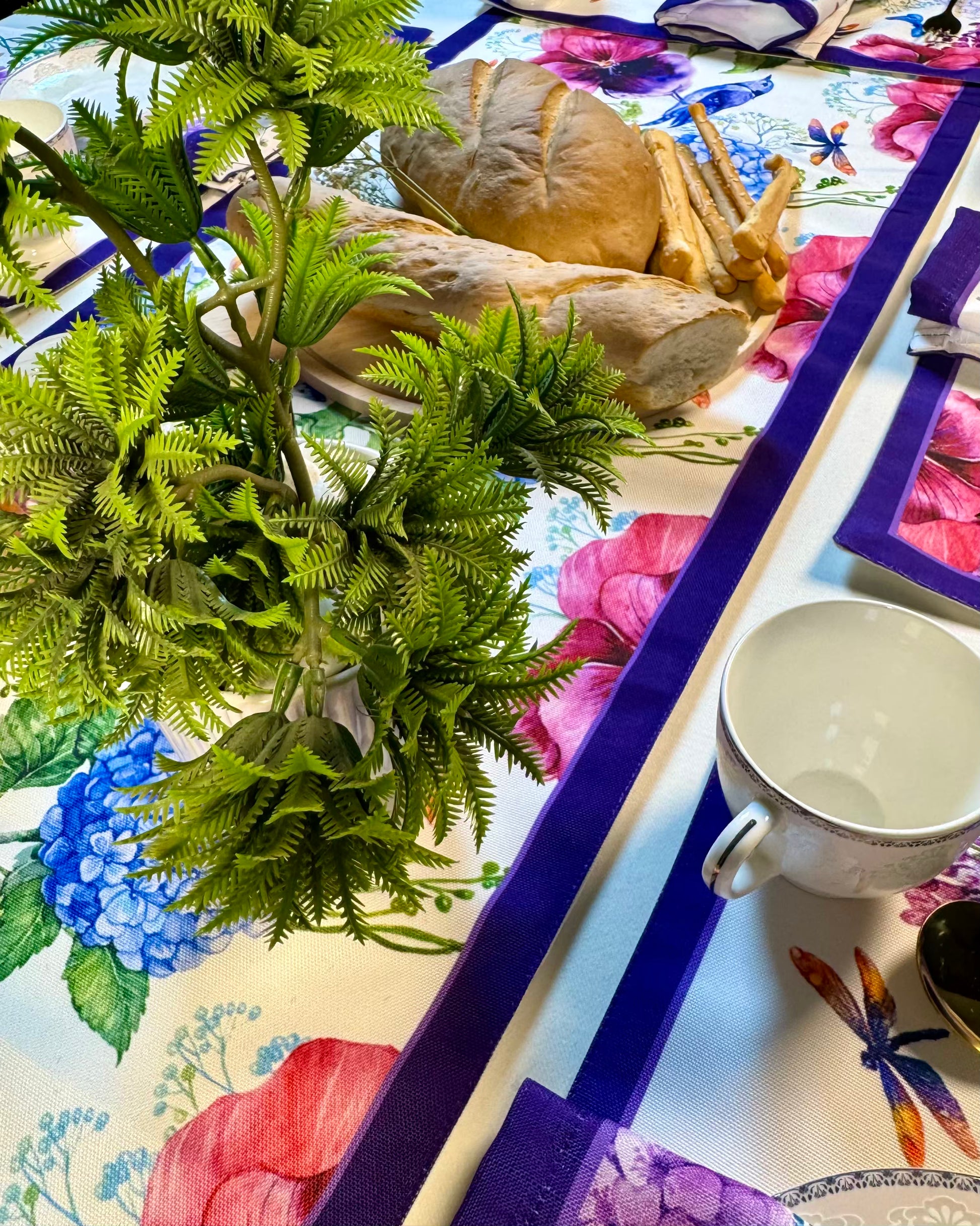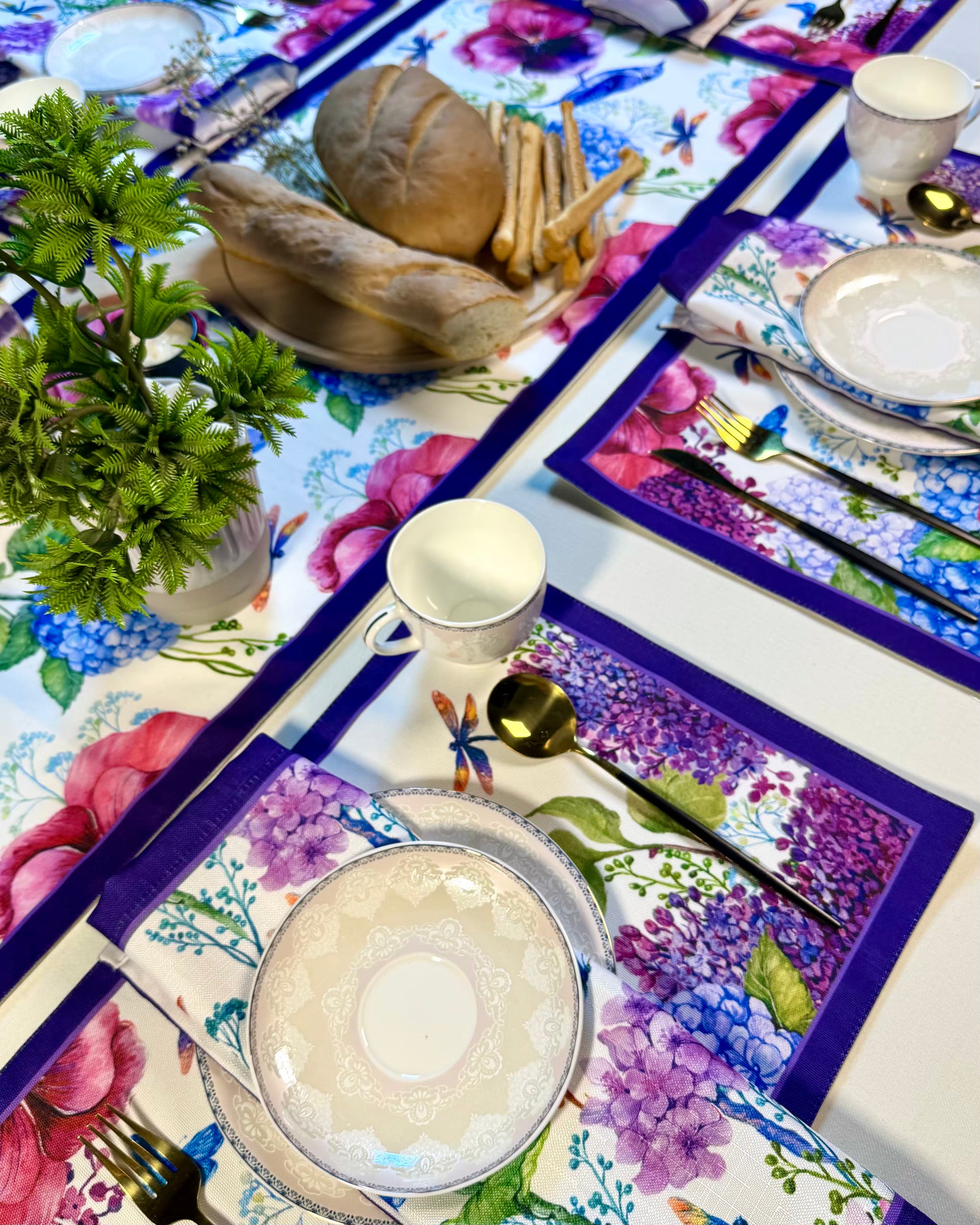 - 9 piece set contains: One (1) Runner of 110 x 15 inches and eight (8) placemats of 12 x 18 inches